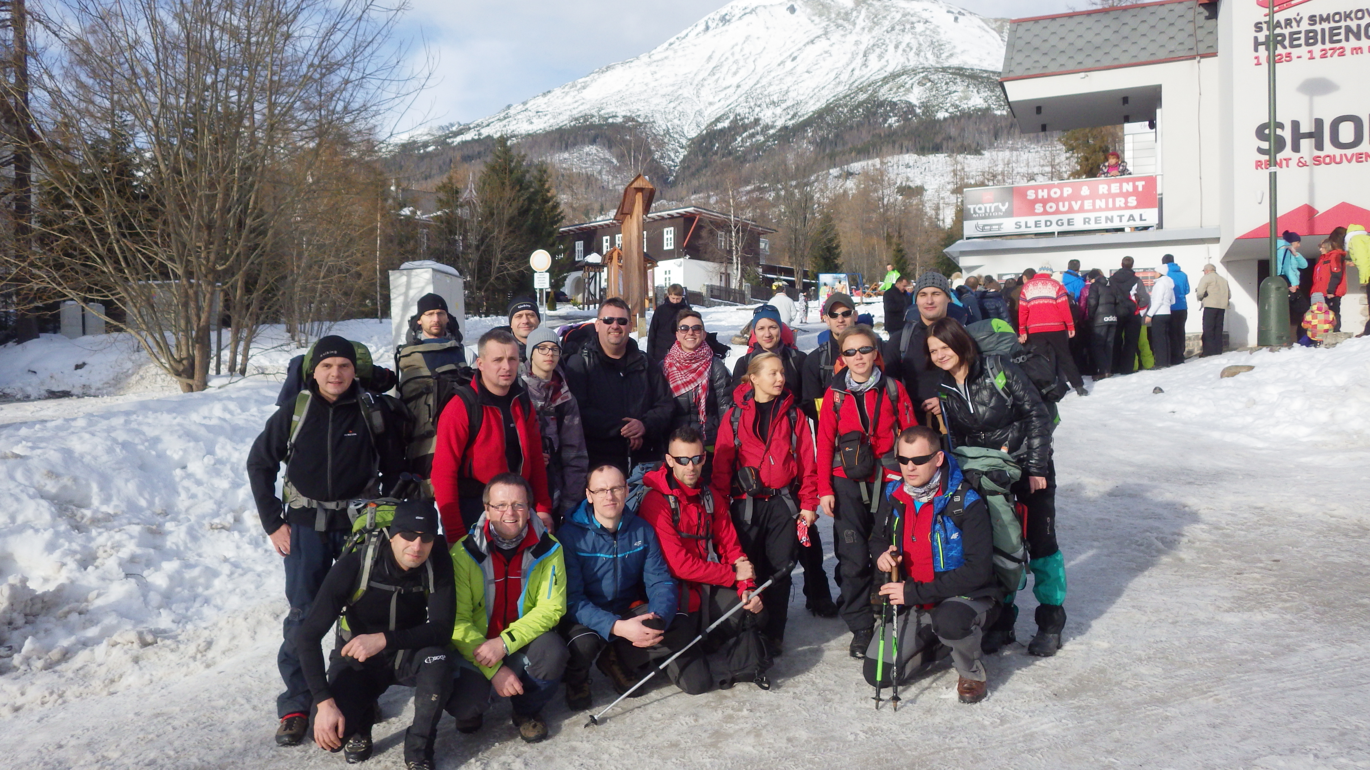 Po spotkaniu wszystkich uczestników w Smokovcu i wykonaniu wspólnej fotki na szlak wyruszono dość późno ale ze względu na dobrą (jak na grudzień) pogodę i mniejszą niż się spodziewano pokrywę śnieżną oraz "przetarty" szlak do schroniska "Zbojnicka chata" wszyscy dotarli jeszcze przed zapadnięciem ciemności.