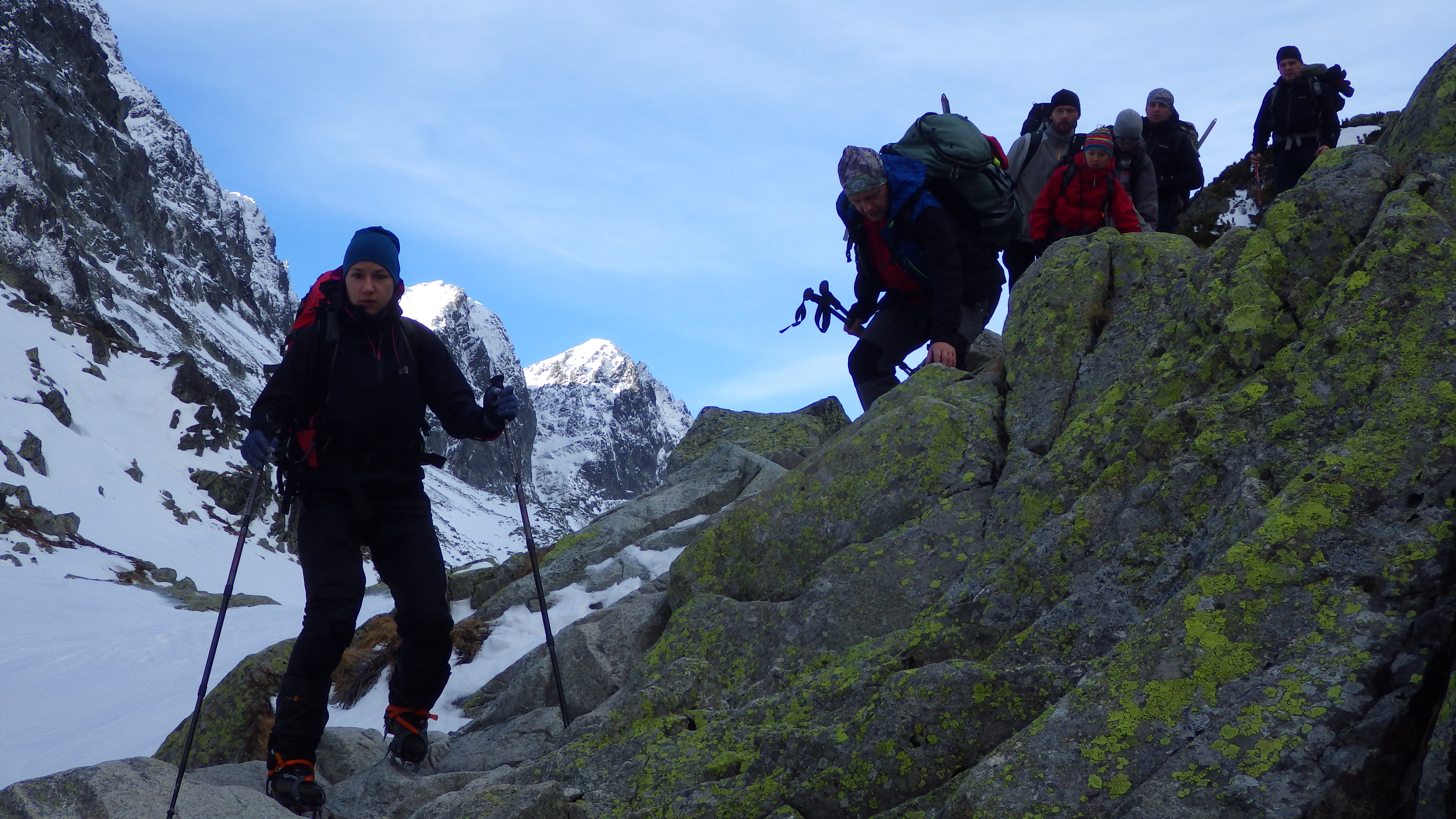Po spotkaniu wszystkich uczestników w Smokovcu i wykonaniu wspólnej fotki na szlak wyruszono dość późno ale ze względu na dobrą (jak na grudzień) pogodę i mniejszą niż się spodziewano pokrywę śnieżną oraz "przetarty" szlak do schroniska "Zbojnicka chata" wszyscy dotarli jeszcze przed zapadnięciem ciemności.