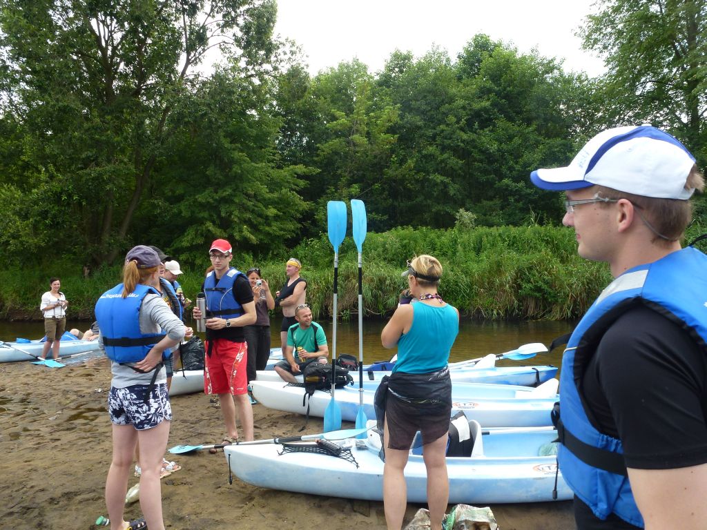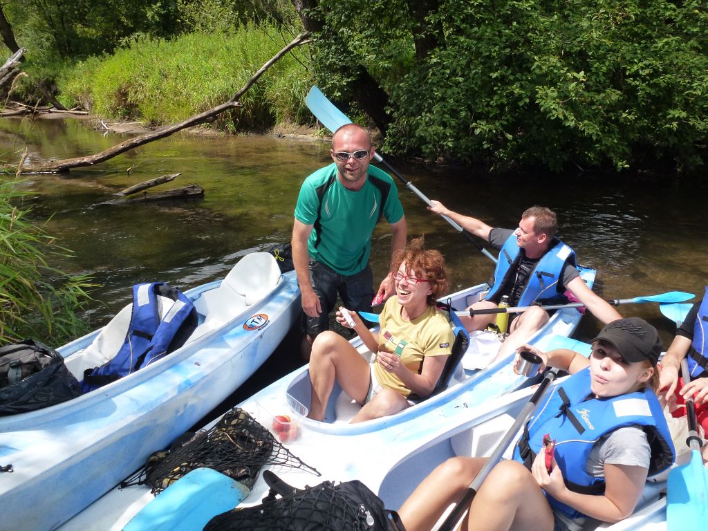 Ekipa prawie w pełnym składzie bo na 10 kajaków wypłynęło 8. Dwie osoby nie dojechały z powodu szalejącej na północy aury a dwie kolejne wykazały się beztroską i nie poinformowały, że rezygnują z udziału w spływie tym samym zabierając 2 miejsca, na które ktoś inny mógłby wskoczyć! Prośba więc na przyszłość aby pomyśleć też o innych, nie tylko o sobie!